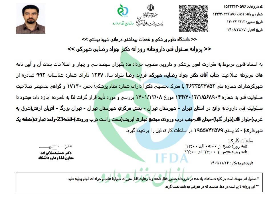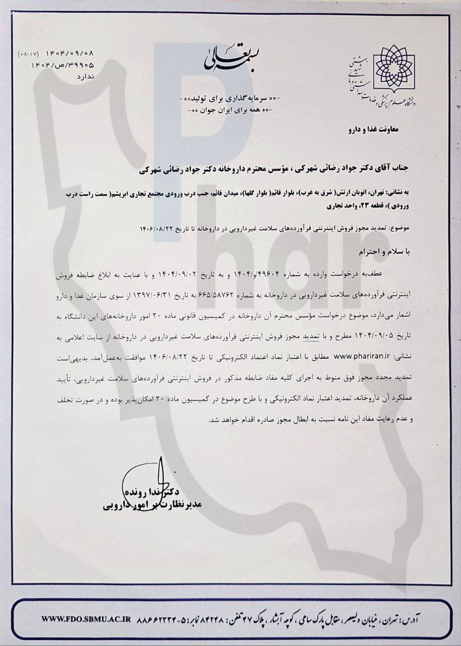 داروخانه آنلاین فاریران وابسته به داروخانه شبانه روزی دکتر جواد رضایی شهرکی با هدف تسهیل در فرایند نسخه پیچی و دسترسی آسان به محصولات و خدمات داروخانه با حداقل هزینه و حداکثر کیفیت خدمت رسانی طراحی و در خدمت عموم مردم قرار گرفته است