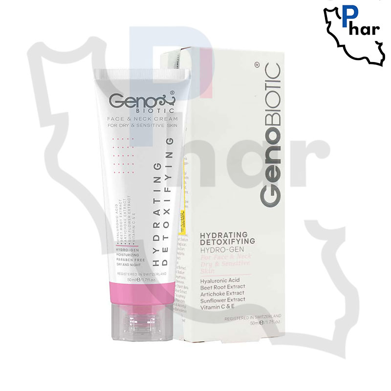 کرم رطوبت رسان صورت و گردن ژنوبایوتیک یک رطوبت رسانی قوی است که از یک طرف با رطوبت رسانی مغذی و آبرسان قوی به لایههای پوست، مانع از خشکی و بروز چین و چروکهای پوستی میشود. از طرفی دیگر یک لایه محافظتی بر روی پوست ایجاد کرده که مانع تاثیر گذاری امواج مضر محیطی در طول شب و روز بر روی پوست شده و با خاصیت آنتی اکسیدانی و دتوکسیفای کنندگی، سلامت پوست را به ارمغان میآورد. این محصول حاوی عصاره ریشه چغندر، عصاره آرتیشو، عصاره آفتابگردان، ویتامین C و E است.