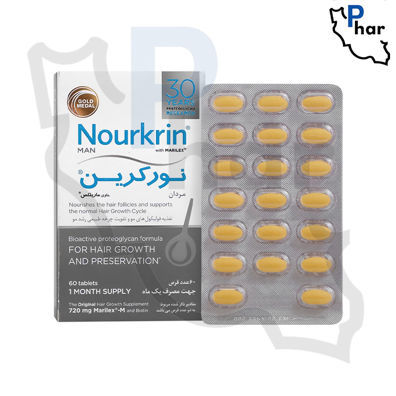 قرص نورکرین آقایان فارمامدیکو با دارا بودن پروتئینی با منشا دریایی به نام ماریلکس که حاوی نوعی پروتئوگلیکان است موجب تحریک رشد مو میشود. قرص نورکرین آقایان منبع سیلیکا بوده و از سفید شدن موها ممانعت میکند. عصاره آسرولا چری، عصاره گیاه دم اسب، ماریلکس، عصاره روغن کبد ماهی و گیاه شنبلیله از جمله ترکیبات موثر موجود در این محصول هستند. این ترکیبات از تحلیل فولیکولهای مو پیشگیری نموده و به تامین مواد مغذی برای مو میپردازند.